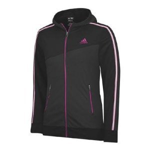 Full-zip jacket with two front pocketsContrast stretch tape down sleeves and back of hoodContrast adidas brandmark at left chest89% Polyester/11% Lycra heather