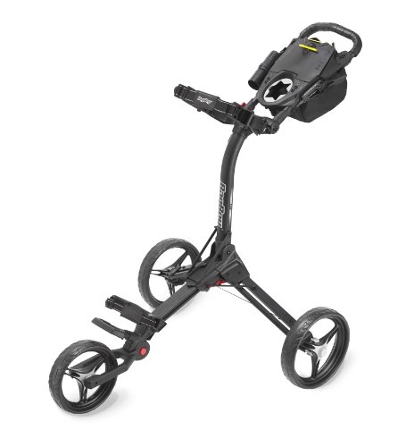 The Bag Boy C3 Golf Push Cart is a three-wheeled push cart with convenient features like a smart phone holder and integrated beverage holder. It also folds away in three easy steps for compact storage.