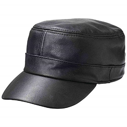 Adjustable Cap Hat Black Genuine Leather Motorcycle Biker Flat Cap (US Seller)