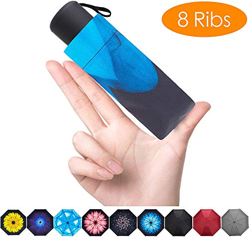 Fidus Upgraded 8 Ribs Mini Portable Sun&Rain Lightweight Windproof Umbrella - Compact Parasol Outdoor Travel Umbrella for Men Women Kids-Blue Daisy